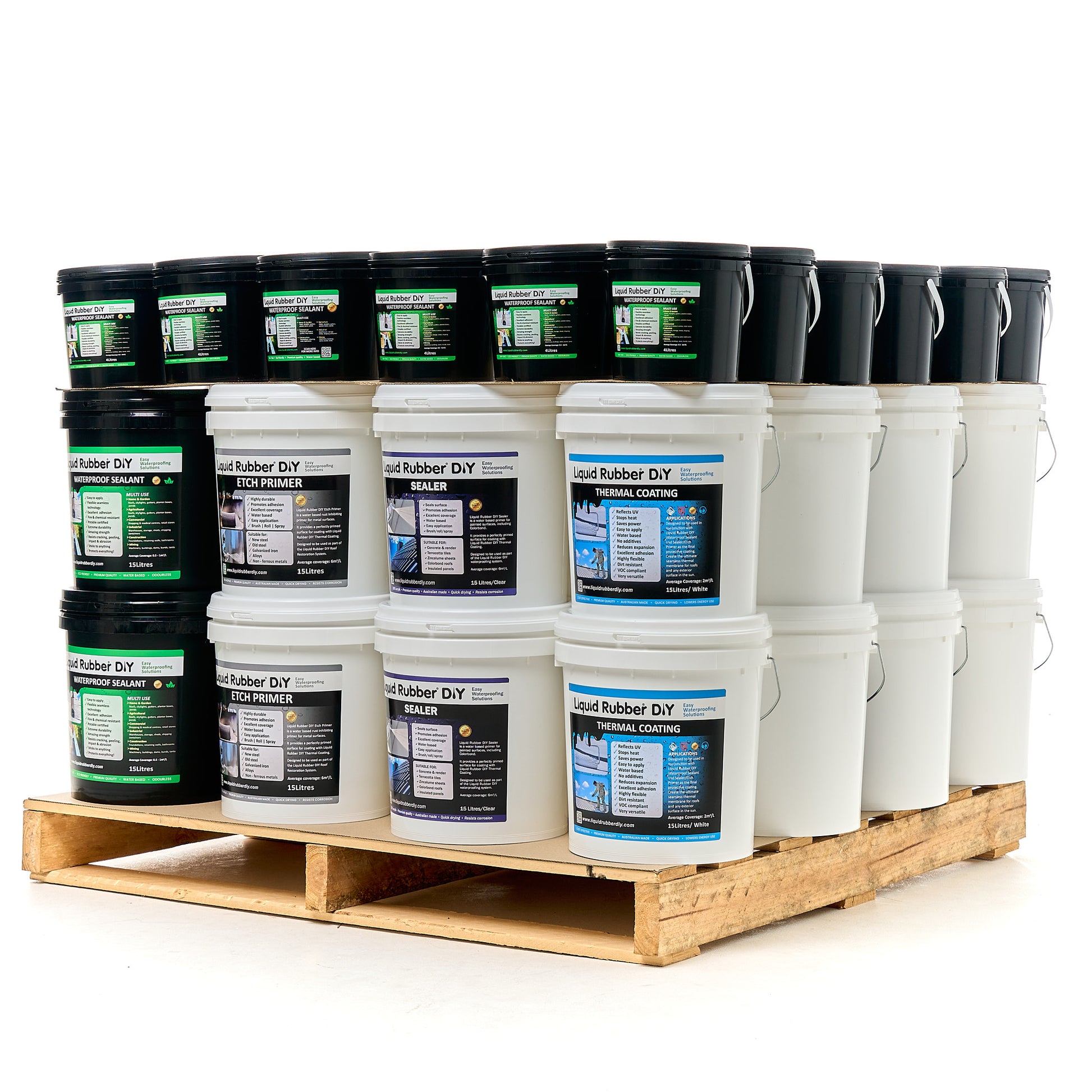 Introducing our Pallet Bundle, the versatile and cost-effective waterproofing solution perfect for any project you have in mind. Whether you're working on roofs, tanks, box gutters, retaining walls, or other applications, our Pallet Pack offers everything you need to ensure your project is water-tight and sealed. The sky is the limit!